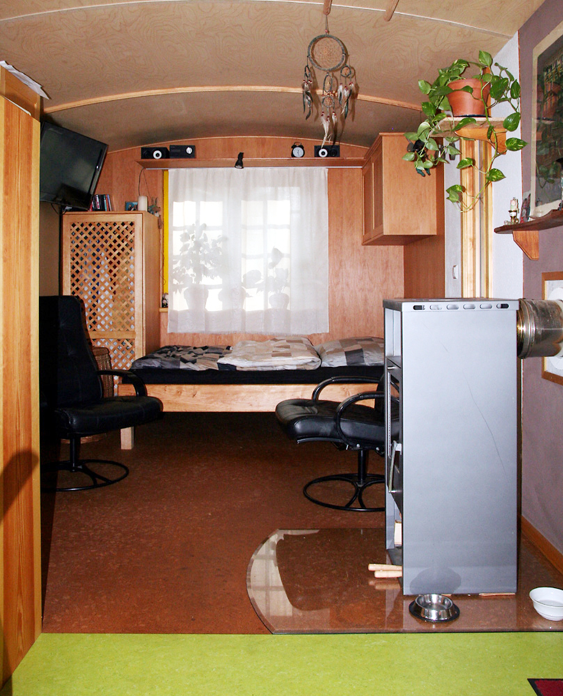Raumteiler, Nasszelle (Toilette, Waschen, Duschen), die Küchenzeile mit Geräten und Einbaumöbel werden individuell geplant und von Meisterhand angefertigt.
